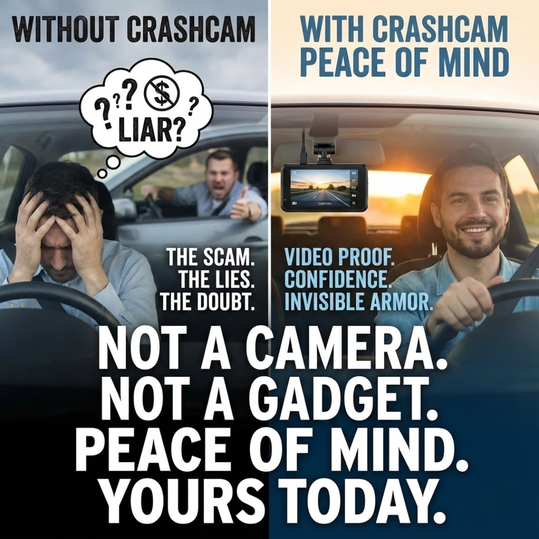Let me be blunt. One staged accident. One brake-check scam. One liar who backs into you then swears you hit them. That's all it takes. Suddenly you're staring at $5,000... $10,000... $15,000 in repairs, increased premiums, and a claims history that follows you for years. The CrashCam costs less than your monthly insurance payment. Yet it stands between you and financial disaster like a bodyguard that never blinks, never sleeps, and never forgets what really happened. This isn't an expense. It's the cheapest insurance policy you'll ever own.